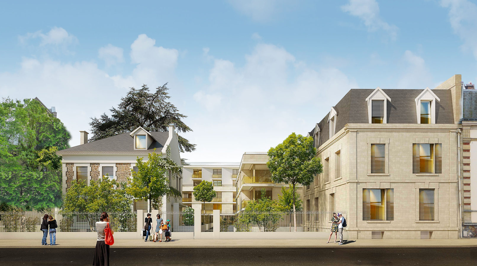 The project rue Jean Mermoz in Saint Germain-en-Laye in Yvelines is part of a plot of 3,624 m2, 90m deep, adjoining a chapel belonging to the Diocesan Association of Versailles.