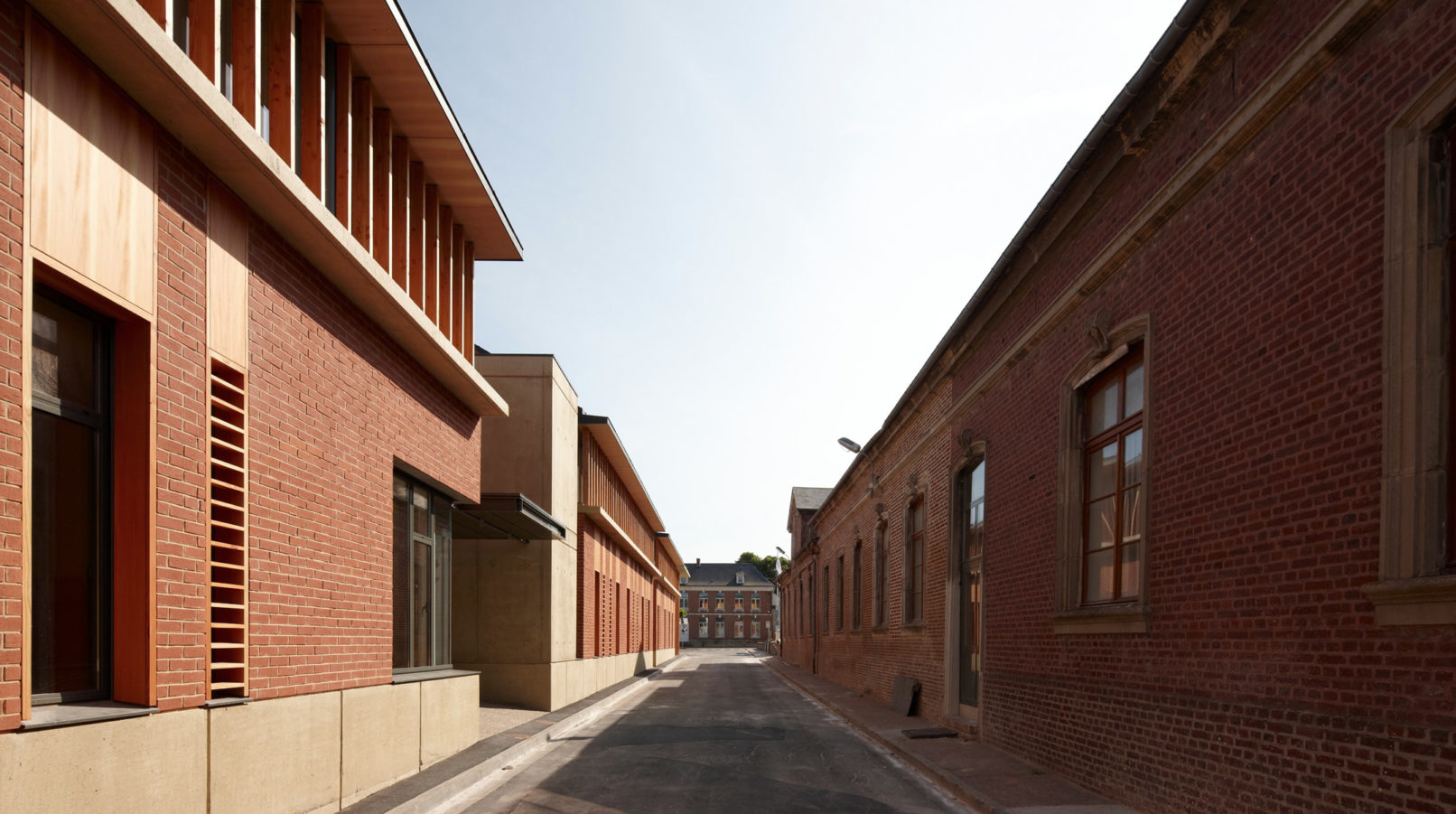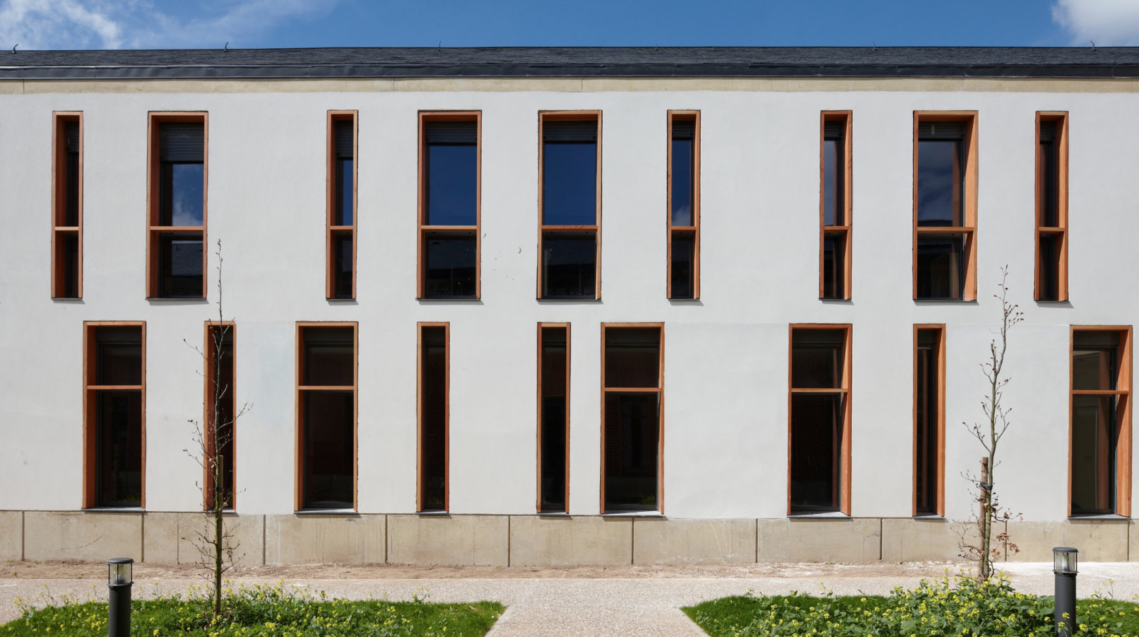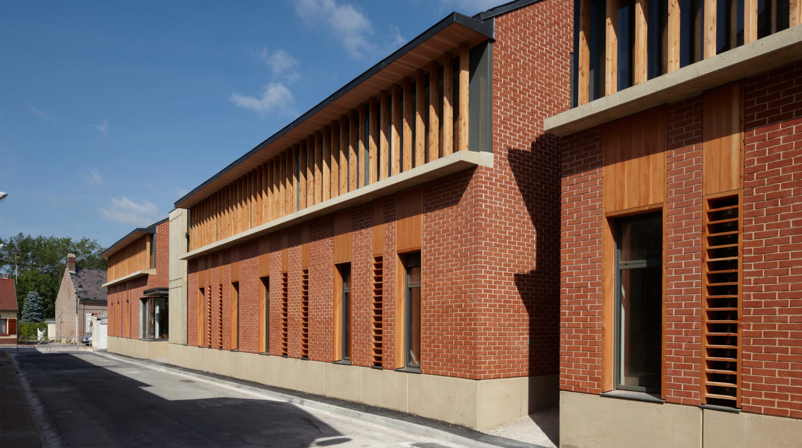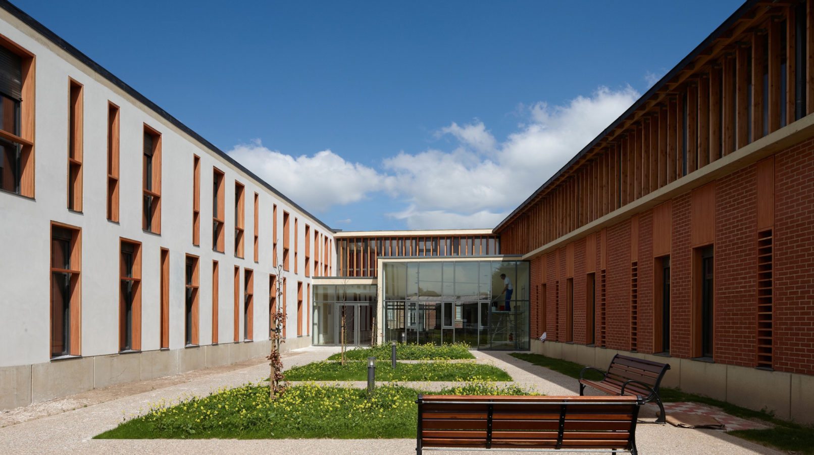 The project combines, on an occupied site, the rehabilitation and extension of the local hospital in Rue (80) in the city center, adjacent to the 16th century chapel, classified as a historic monument, in order to accommodate 75 beds and places of ‘reception and accommodation for dependent elderly people, as well as 28 geriatric follow-up care beds in another building, with common premises in a ground floor volume.