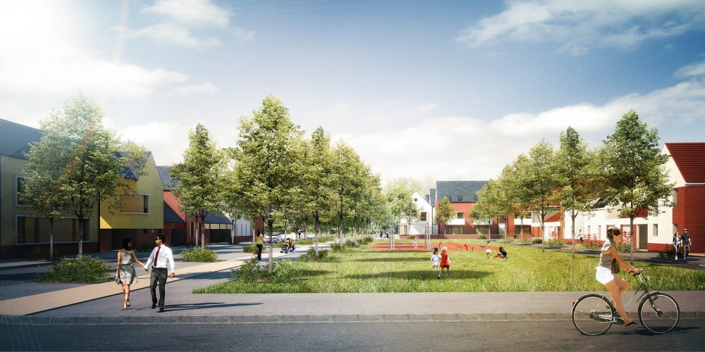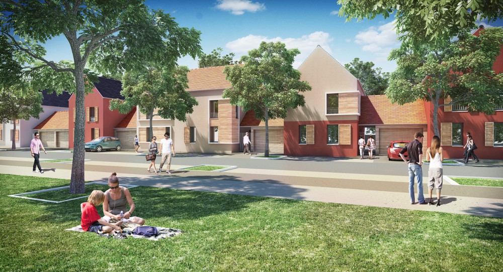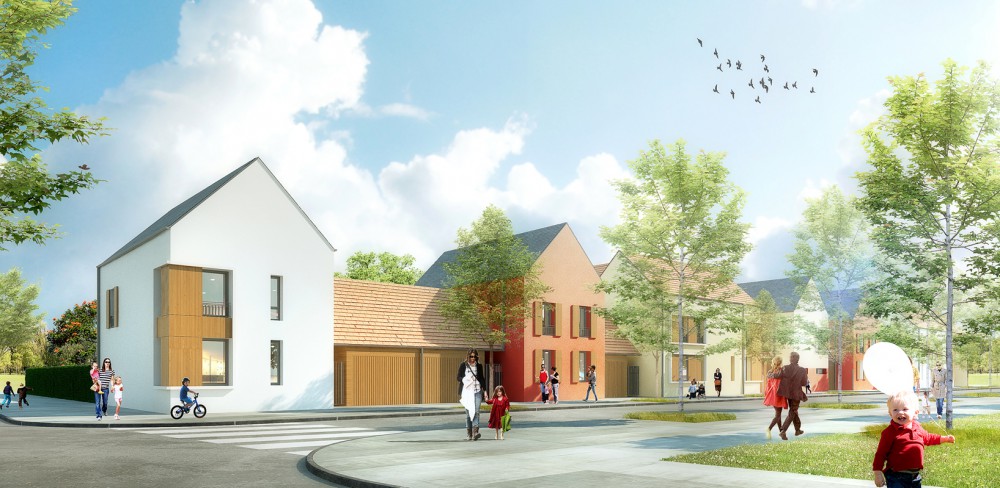 Construction of 34 collective rental housing units and 8 townhouses for accession. The “garden district” is part of a comprehensive development approach inspired by sustainable development objectives, with a real desire to integrate the existing town.