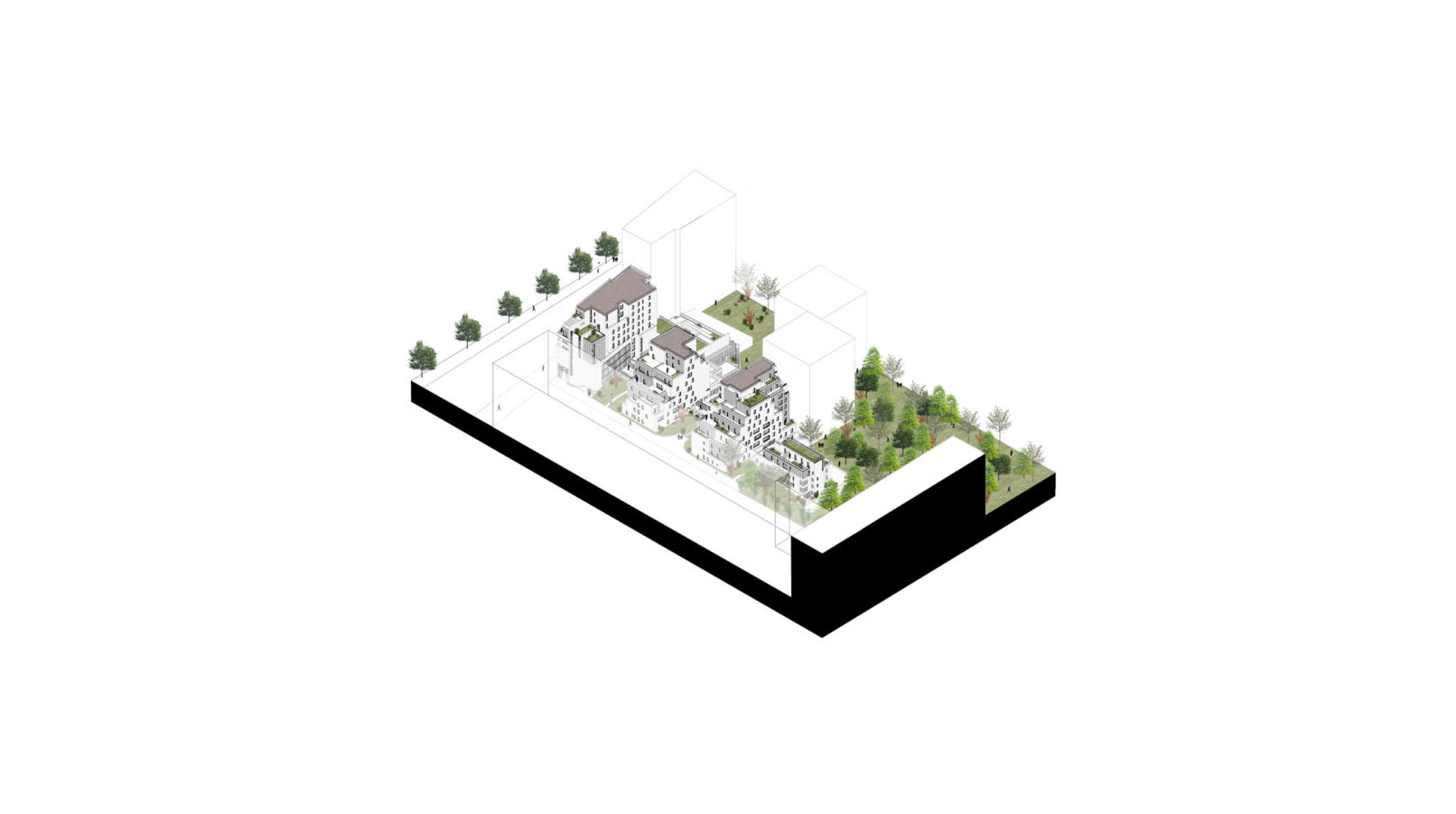 Differentiated functional access becomes essential on the boulevard. The halls of accommodation are spread over the gardens. The windows, the lights, the situations are combined to create the urbanity of the place.