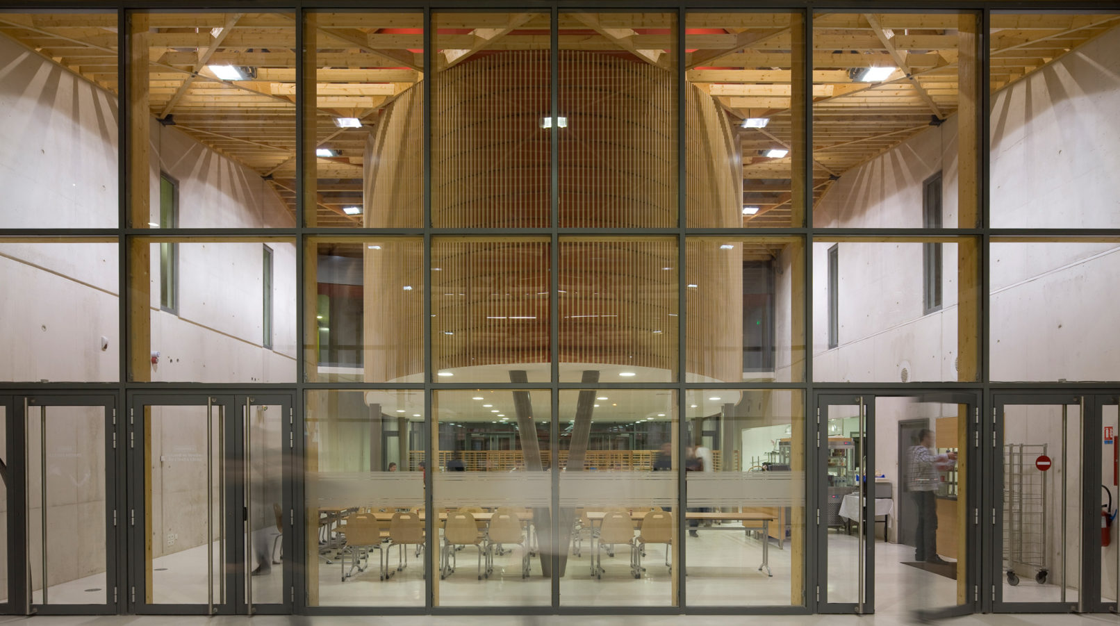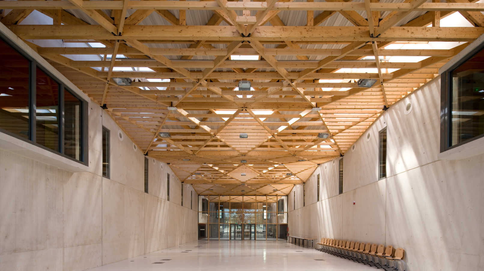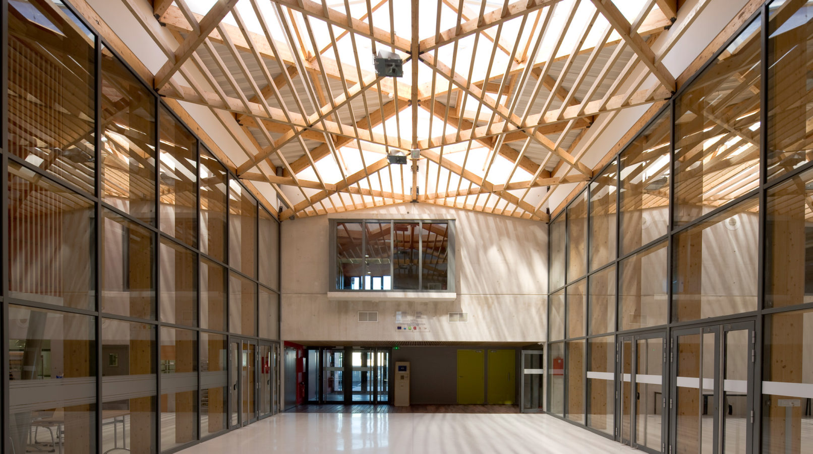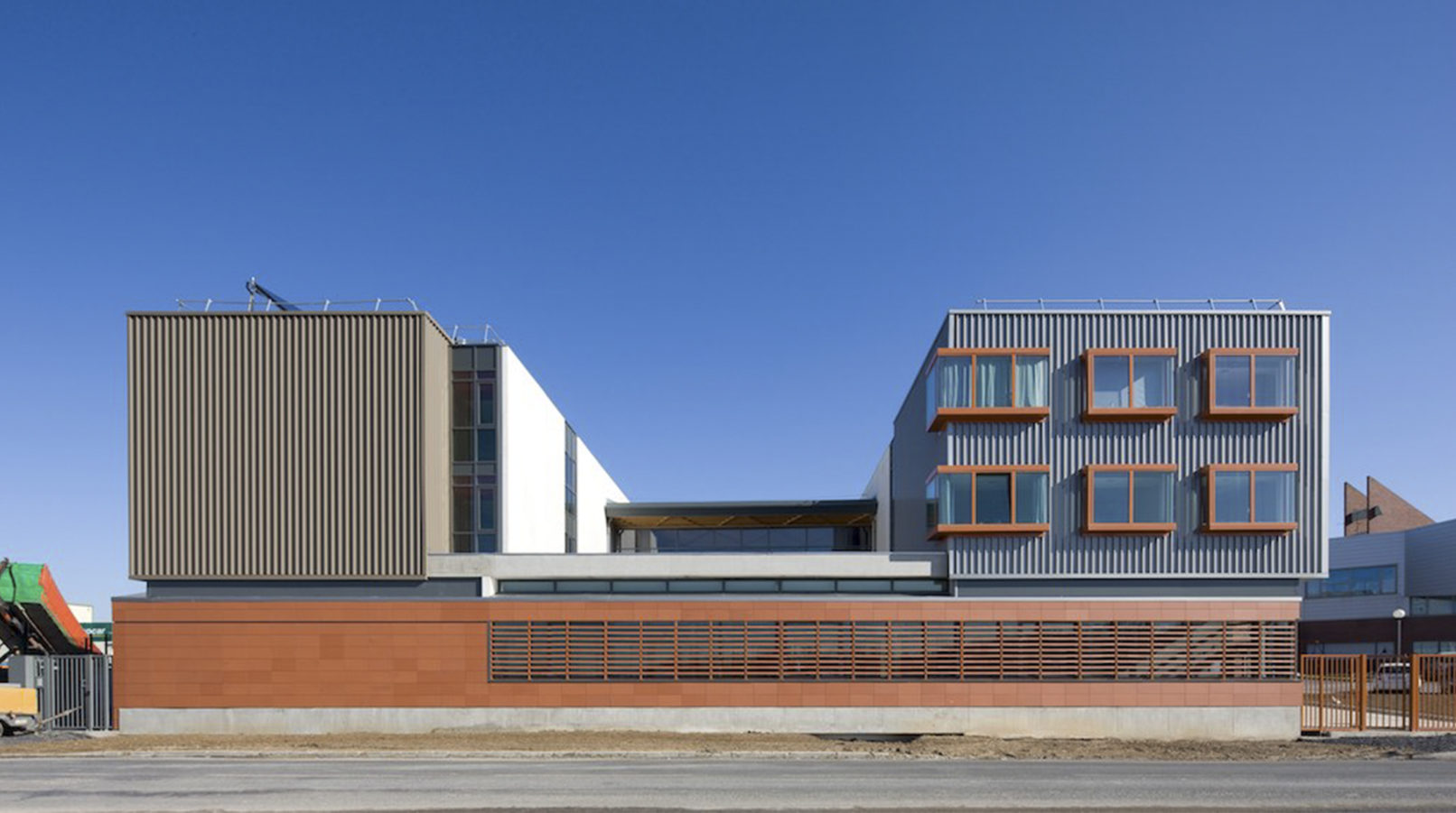 Construction of a mixed BBC building bringing together accommodation, inter-company restaurant, permanent contract, office space and parking. The Accommodation Center, supported by the Chamber of Trades, announces the entire ZAC and implicitly assumes a role of showcase. It is a unitary and compact R + 2 building over the long length of the land, bringing together users and the public in a unifying system that is both transparent and open, but whose “porosity” is controlled and where 9m thick can accommodate both apprentice rooms and office spaces.