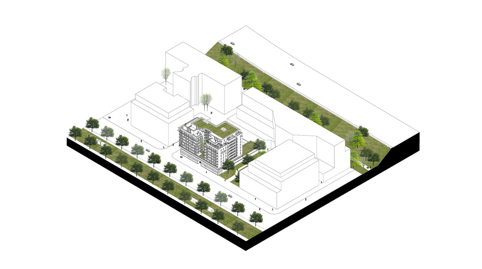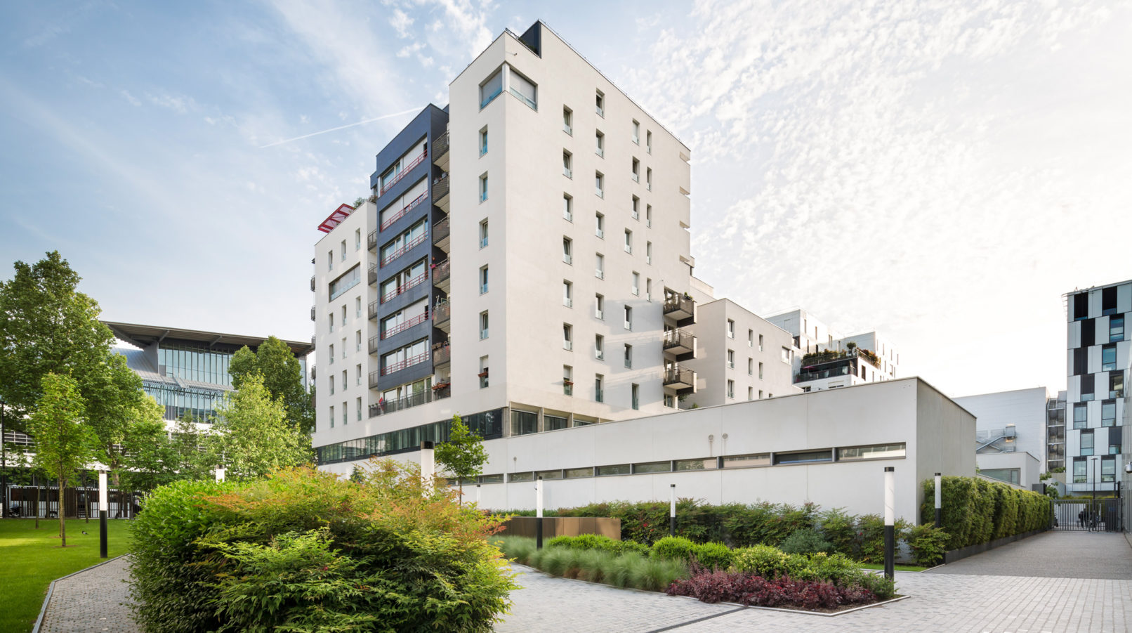 Construction of 96 housing units, including 43 rental units and 53 for home ownership “Through” workshop “work, this project builds the coherence of SEMAVIP’s urban plan, combining significant office property on the peripheral side and a set of housing plots combining activities, shops, social housing and free access.