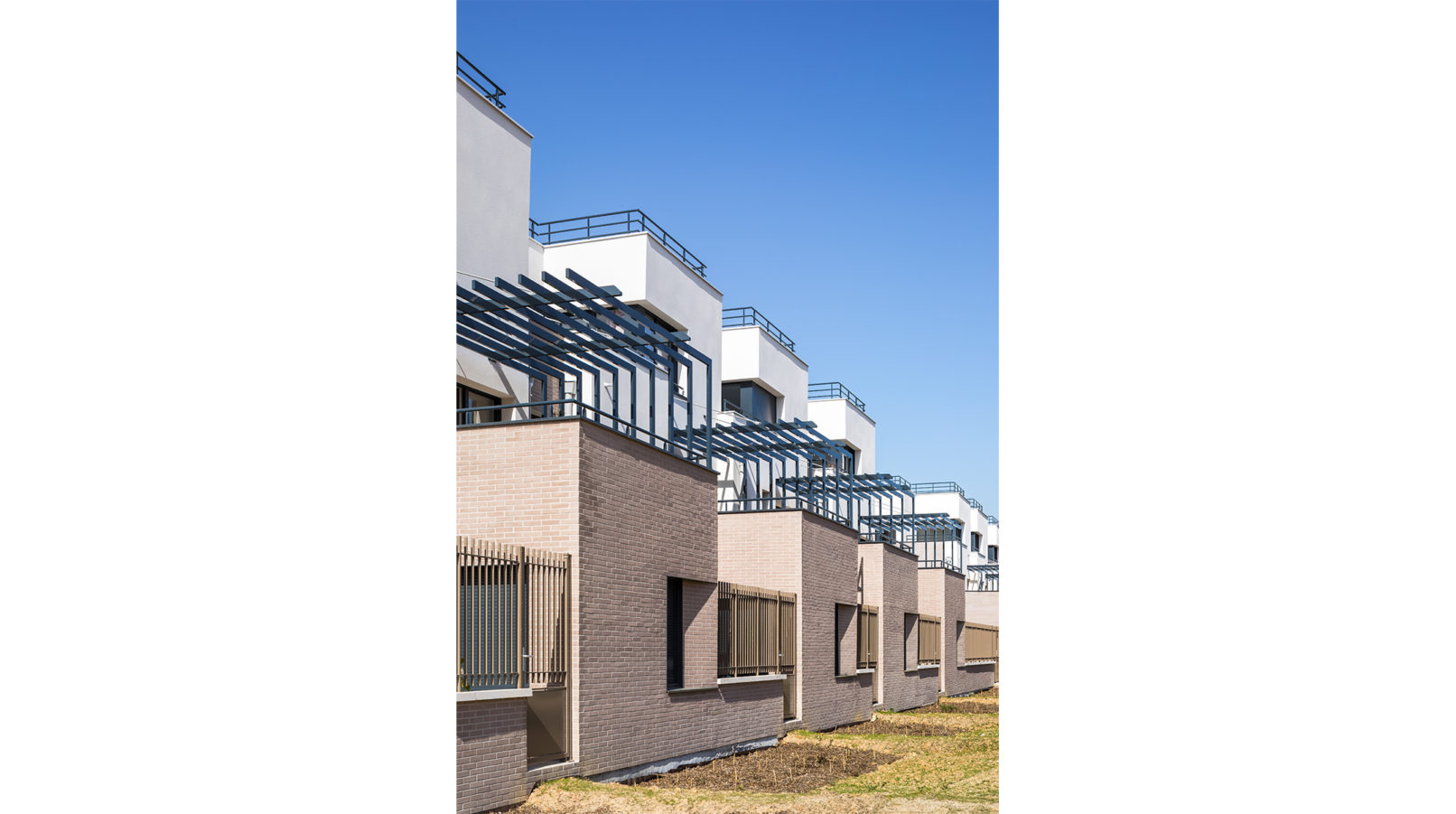 This 119-unit home ownership construction project is located on the edge of the state forest and is organized around the heart of an island, a major clearing garden, a common space for conviviality and shared uses.