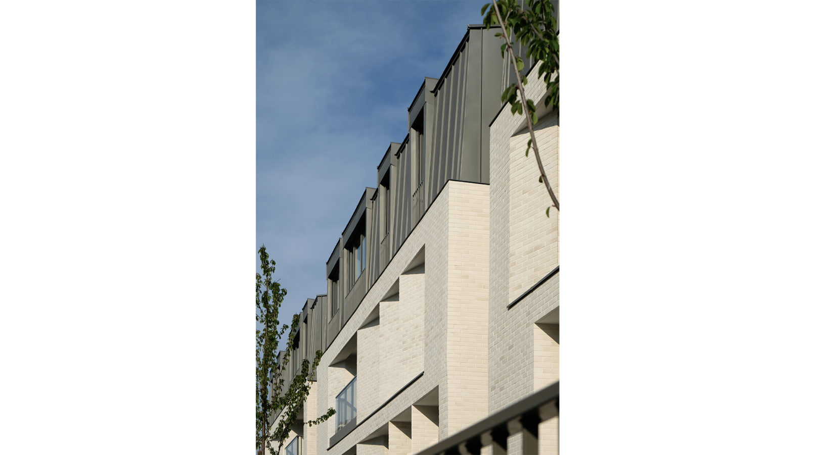 À l’angle des rues, le volume général est décomposé et exprime trois hôtels particuliers sur des avant-jardins orientés au sud. Une double orientation, des volumes généreux de plus de trois mètres sous toiture, une qualité spatiale et un choix de matériaux dialoguent dans une géométrie sophistiquée d’angle et de biais …