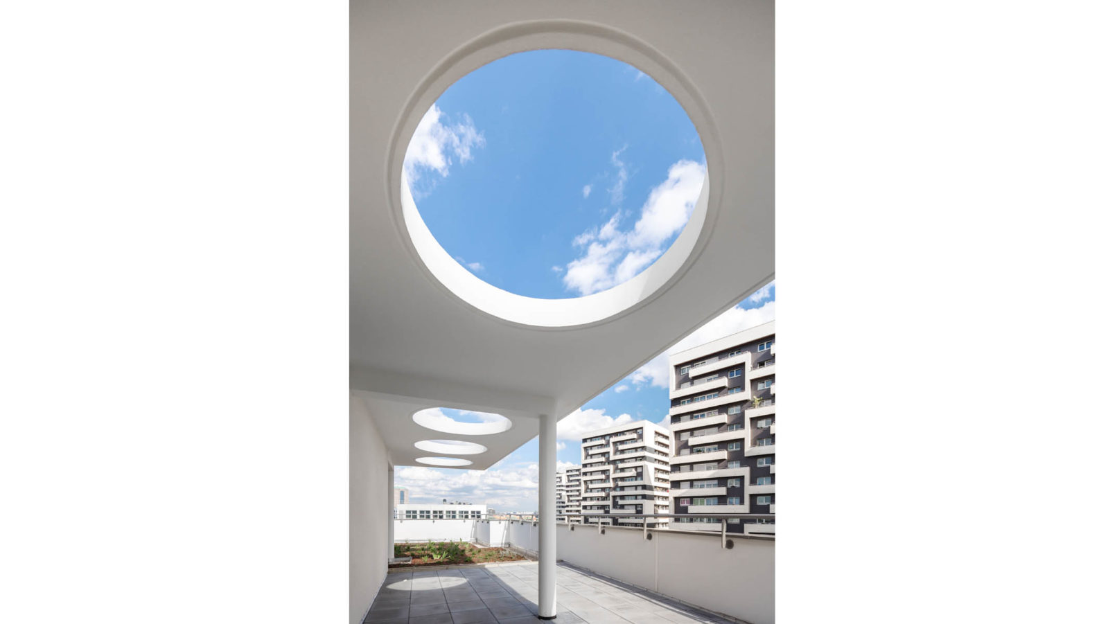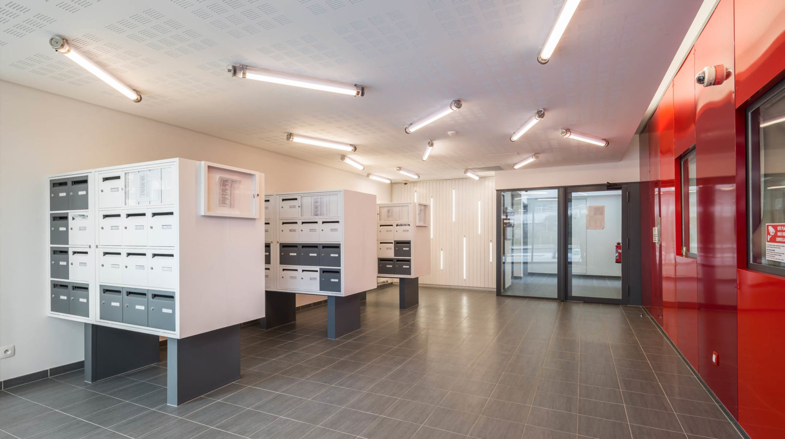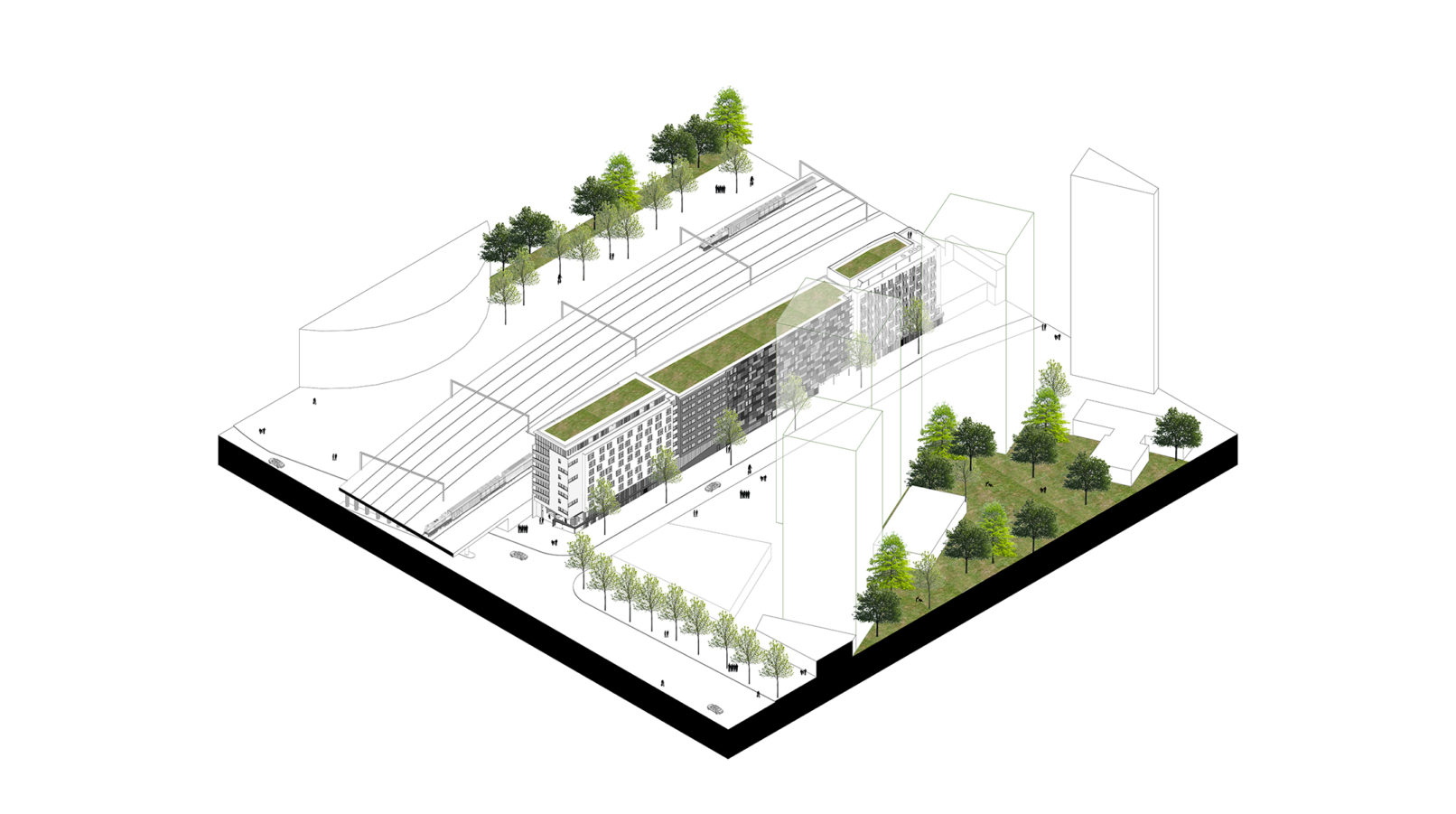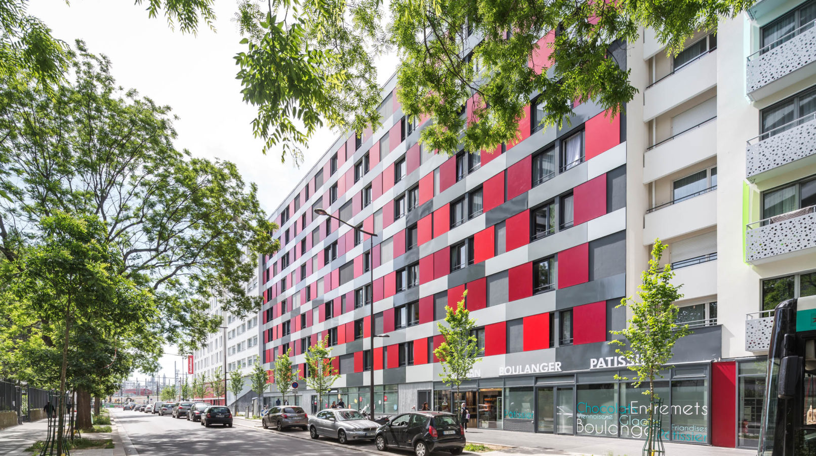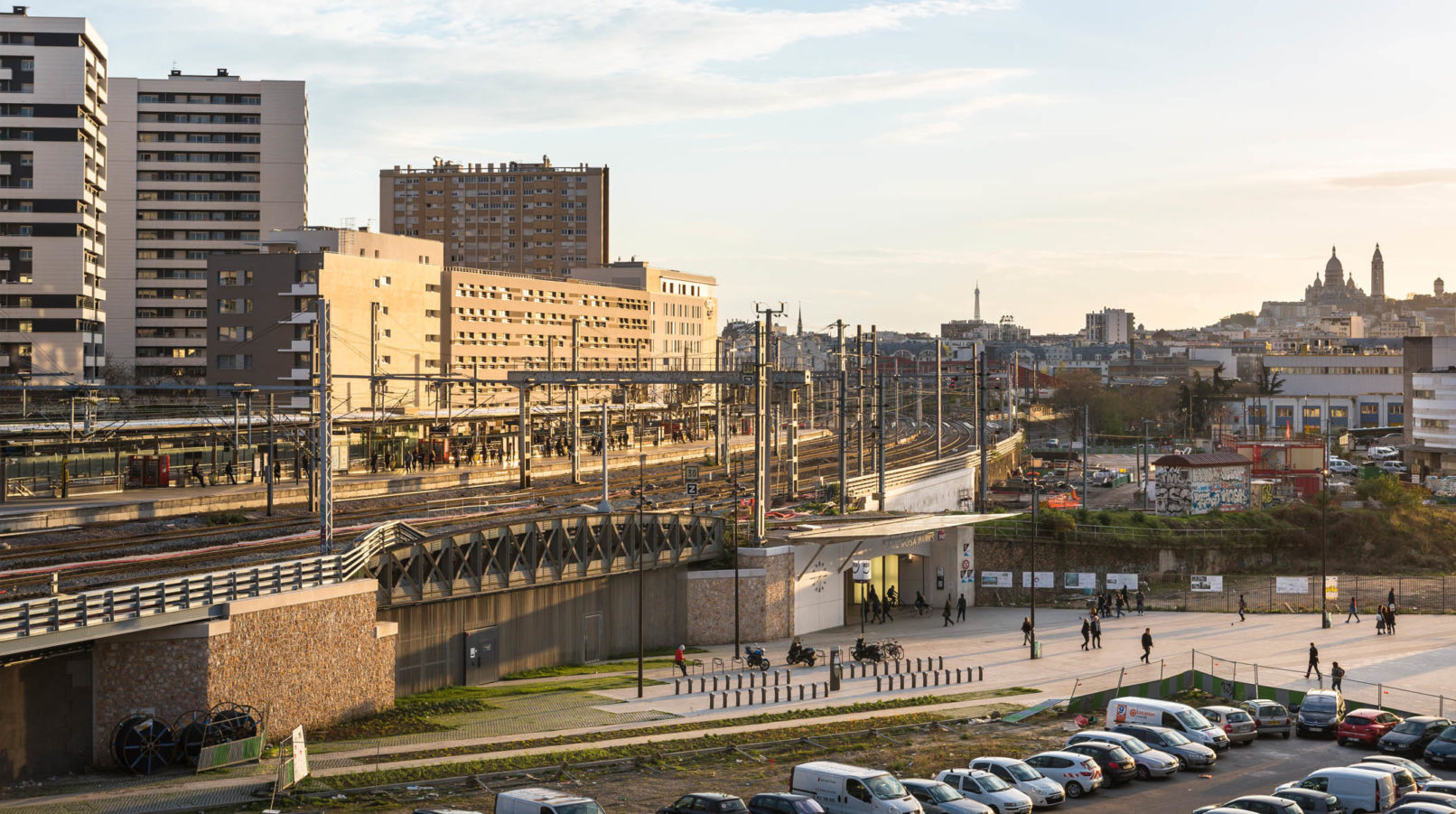 Bordant sur 146 mètres le plateau ferroviaire des gares du Nord et de l’Est, ce bâtiment fractionné reconstruit et protège l’espace public de la rue Gaston Tessier, désenclavée par la construction de la nouvelle gare Rosa Parks.