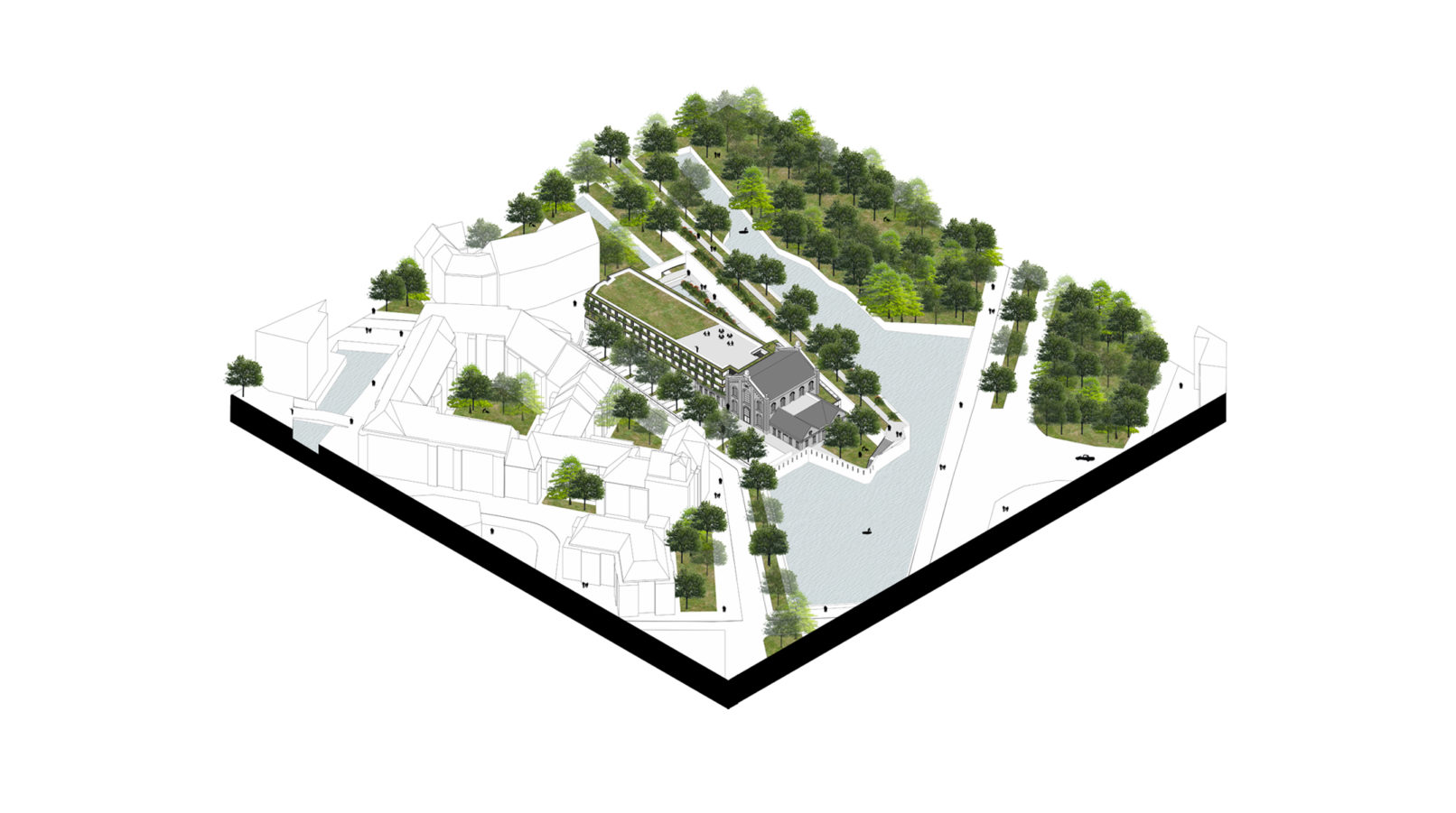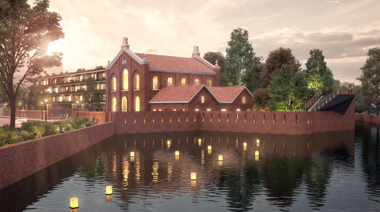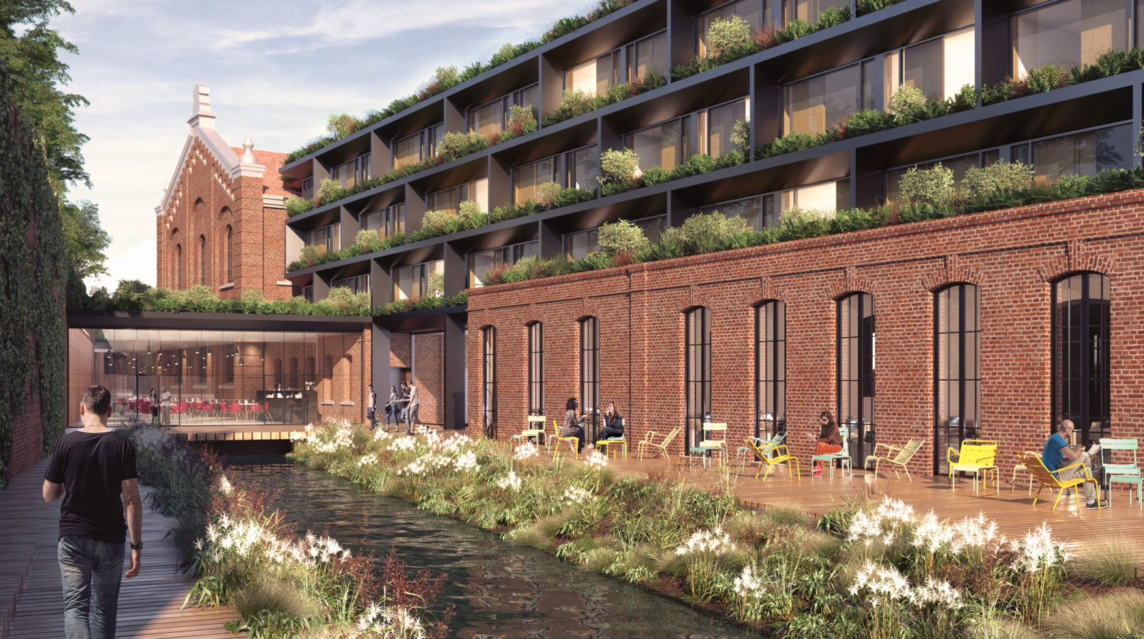 La présence de la Basse Deûle et du canal d’amenée participe à l’identité de cette usine chargée d’histoire. Avec l’arrivée du plan bleu et la restitution du tracé de la Deûle au pied de l’enceinte fortifiée, le site devient le point de départ d’un projet architectural et paysagé ambitieux.