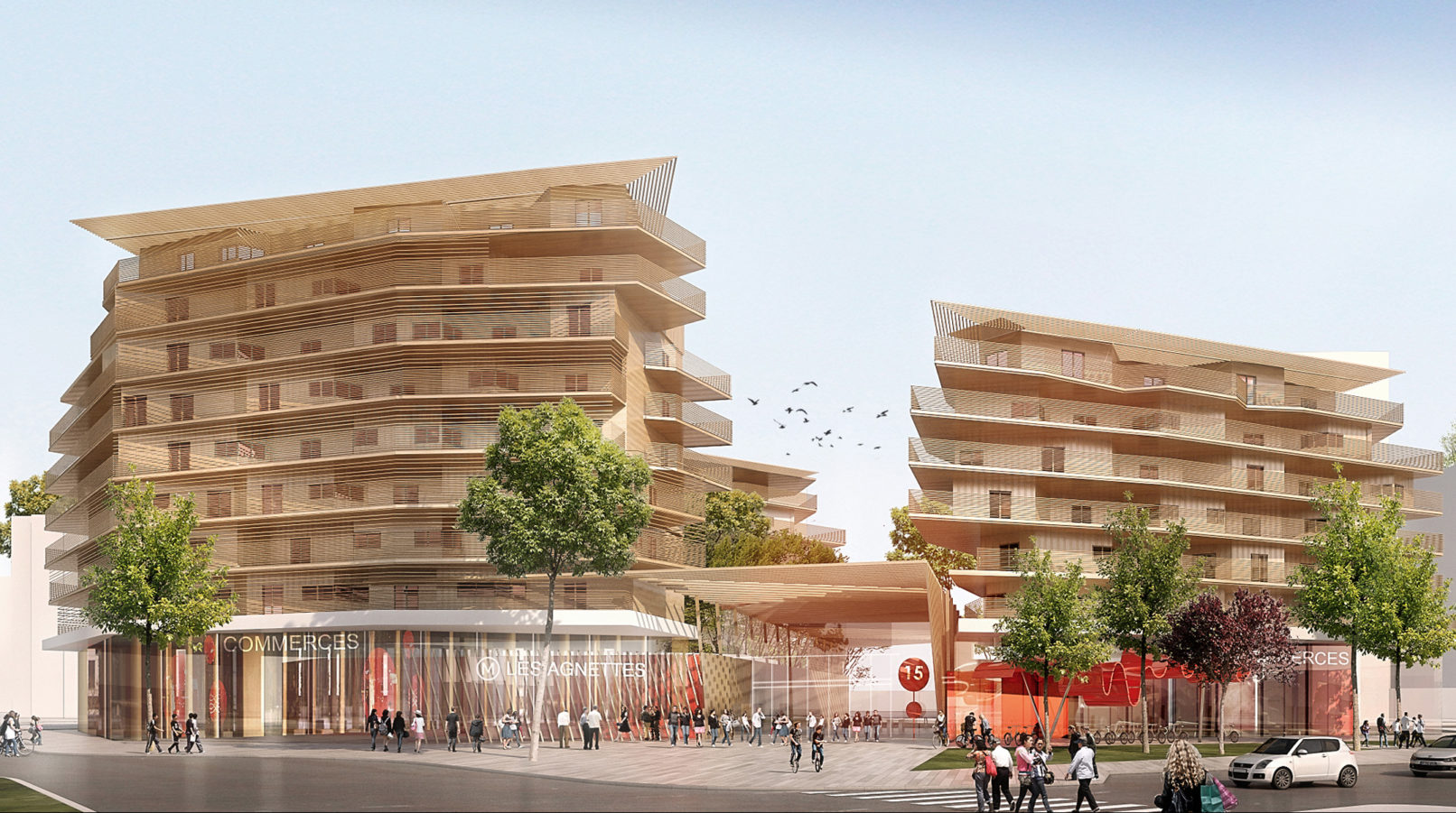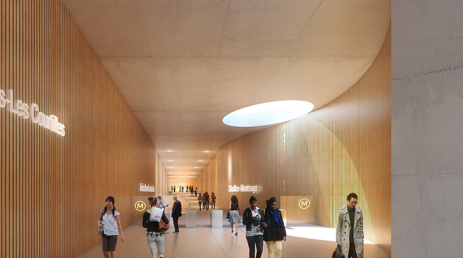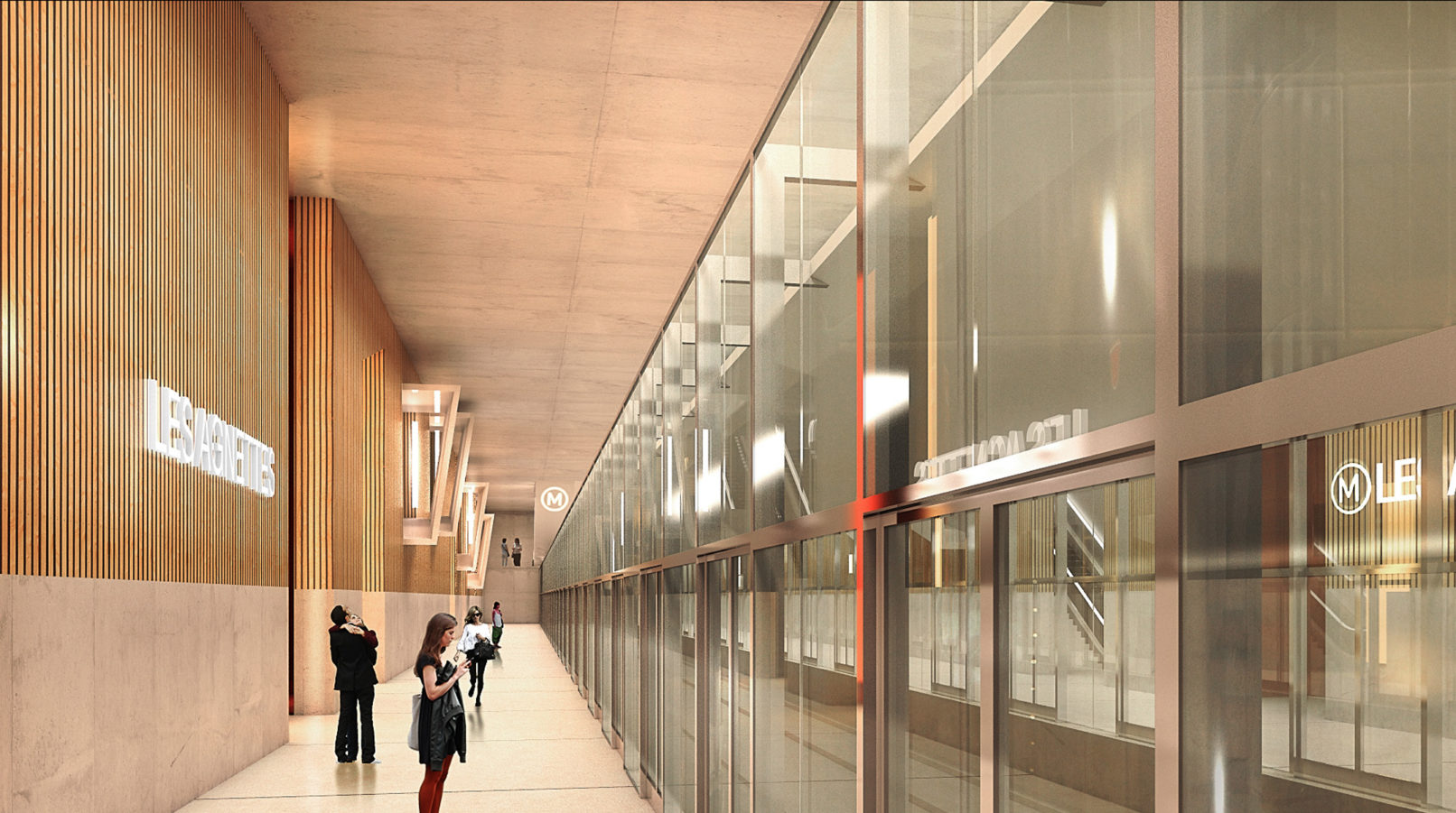 - Cette ambiance de bois et de lumière accompagne la transition entre le monde souterrain qui représente l’échelle territoriale de la ligne de métro et l’échelle locale du quartier des Agnettes.