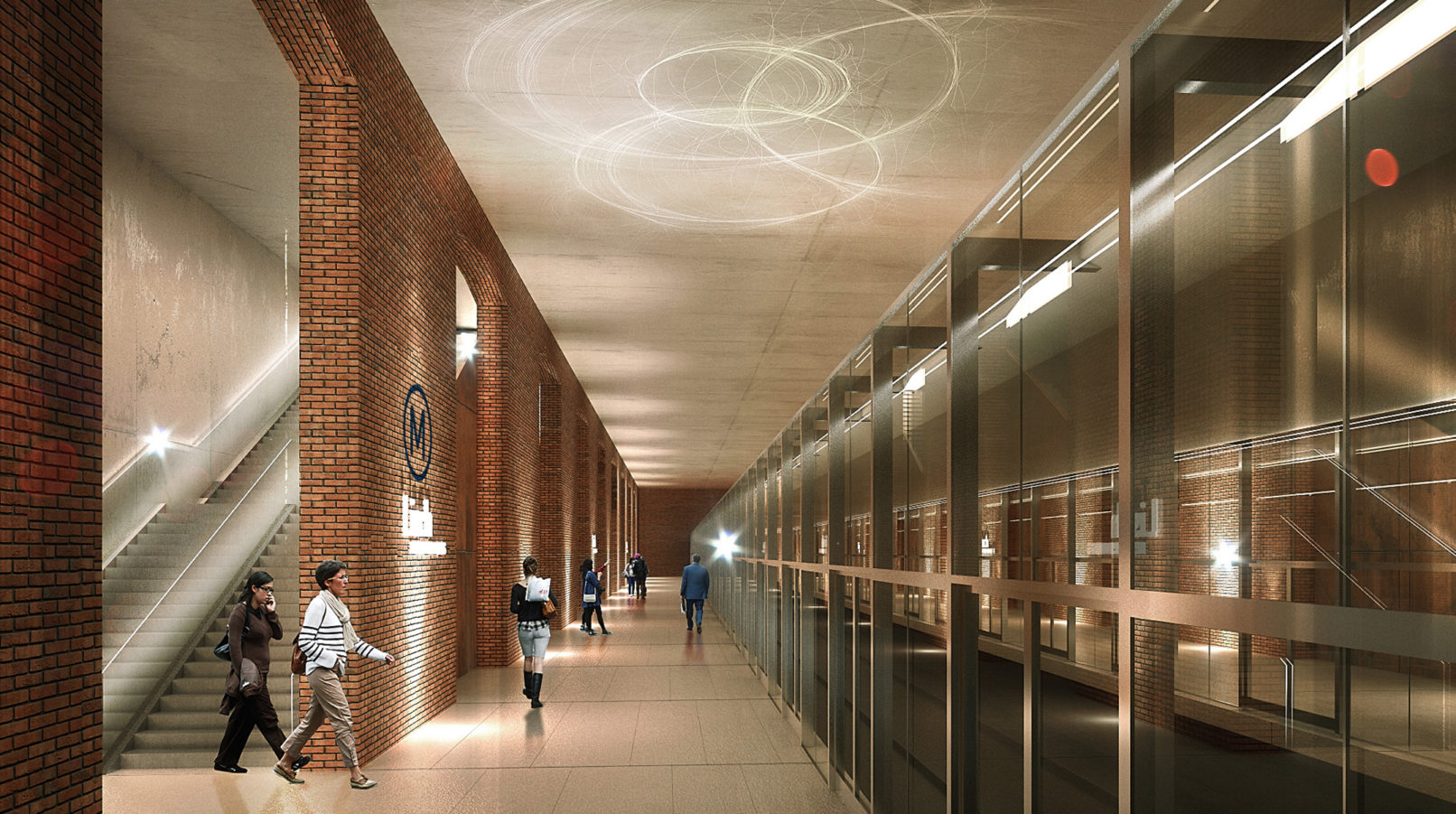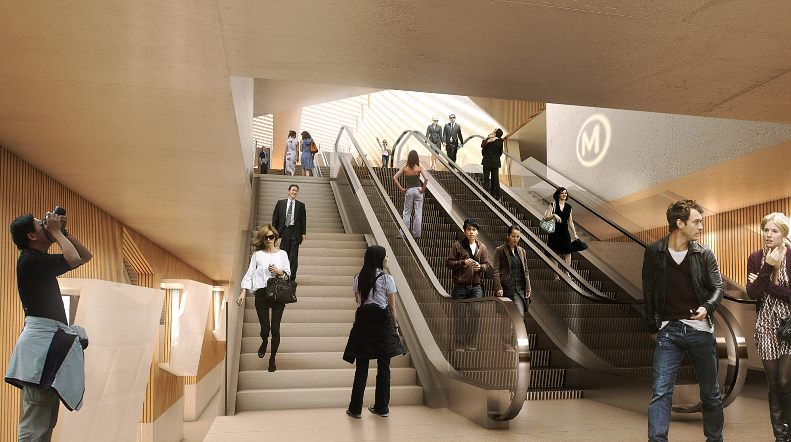 Le défi d’une station de métro située à 30m sous terre est de proposer un parcours évident et agréable dans la continuité du voyage.