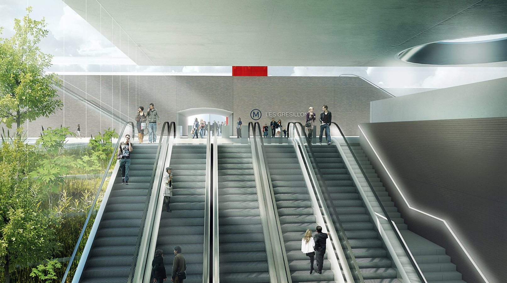 - Dans cet ancien tissu industriel en pleine recomposition, la Gare des Grésillons est le point de départ d’un nouveau quartier en construction. Elle permet la jonction entre la ligne RER existante, en viaduc, et la future ligne souterraine de métro.