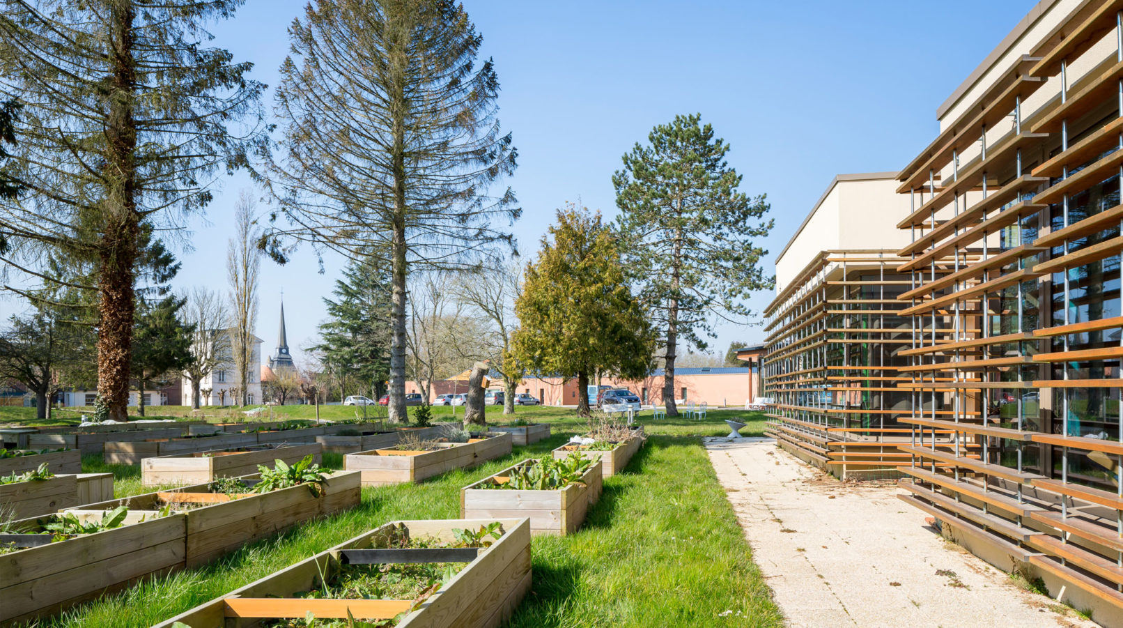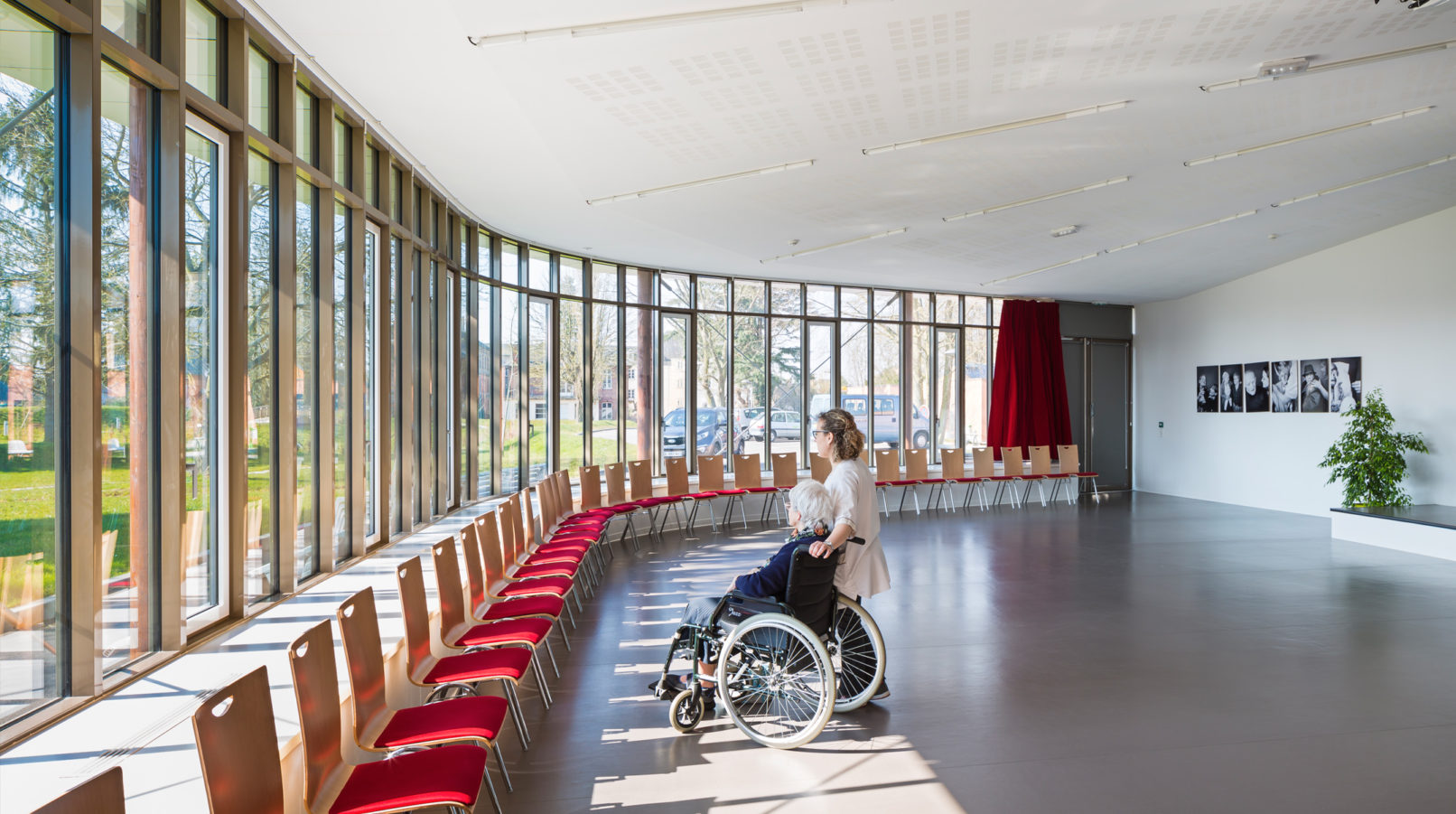 Avec 214 chambres dont 34 dédiées aux malades d’Alzheimer, la maison de retraite développe une surface de 14 200 m2 SHON, toute en rez-de-chaussée afin de lutter contre la dépendance et permettre une déambulation aisée, avec un accès de plain pied au parc de 3 ha.