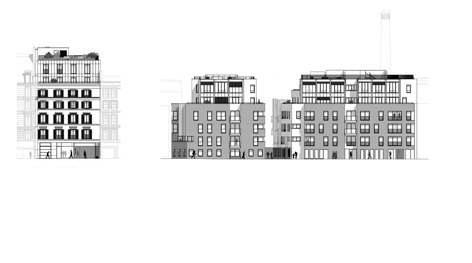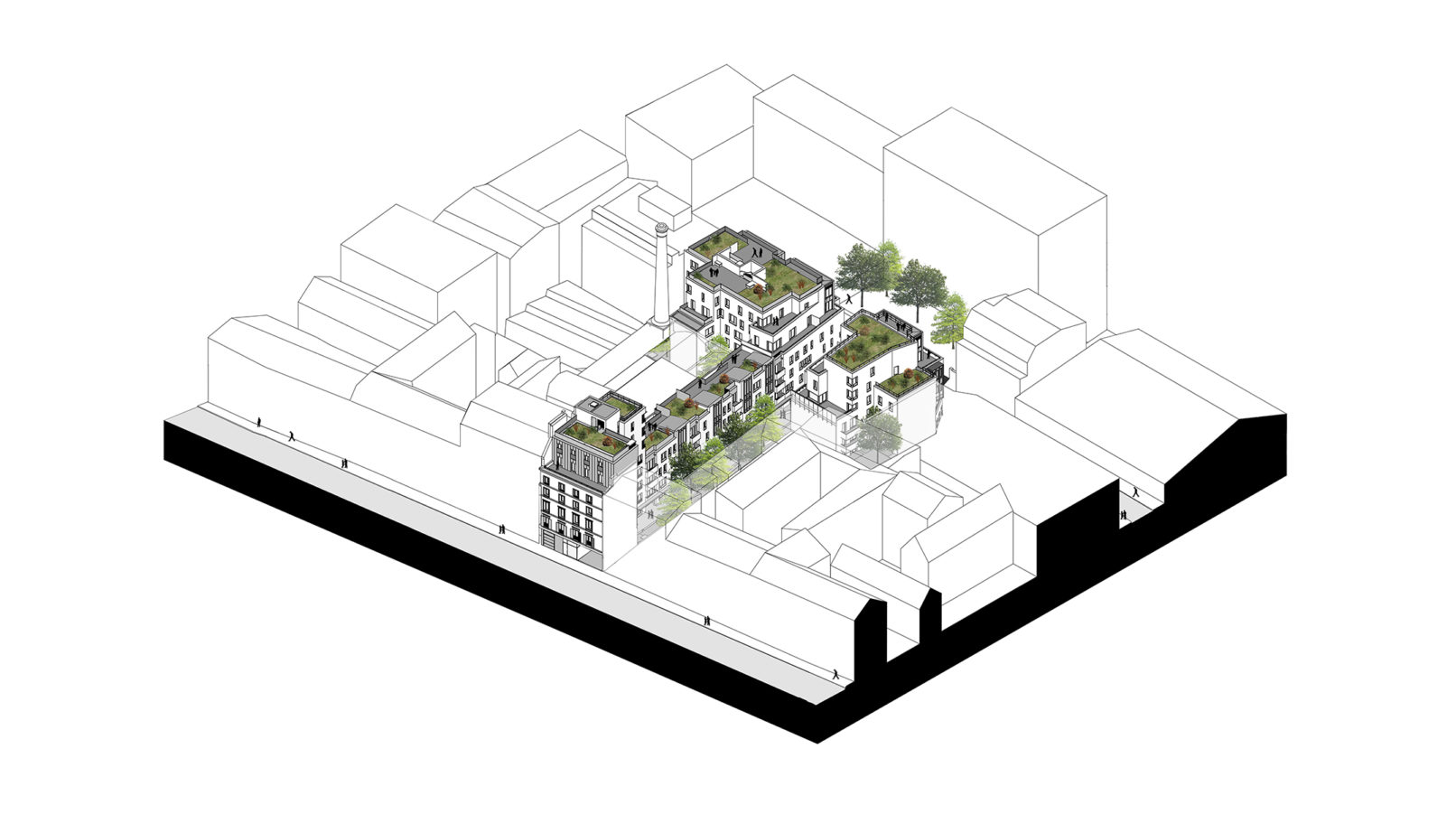 Ce projet de 83 logements sociaux et en accession mixés, en lieu et place d’un ancien garage, est l’occasion unique de créer un passage public entre la rue Oberkampf et le passage Saint-Pierre Amelot.