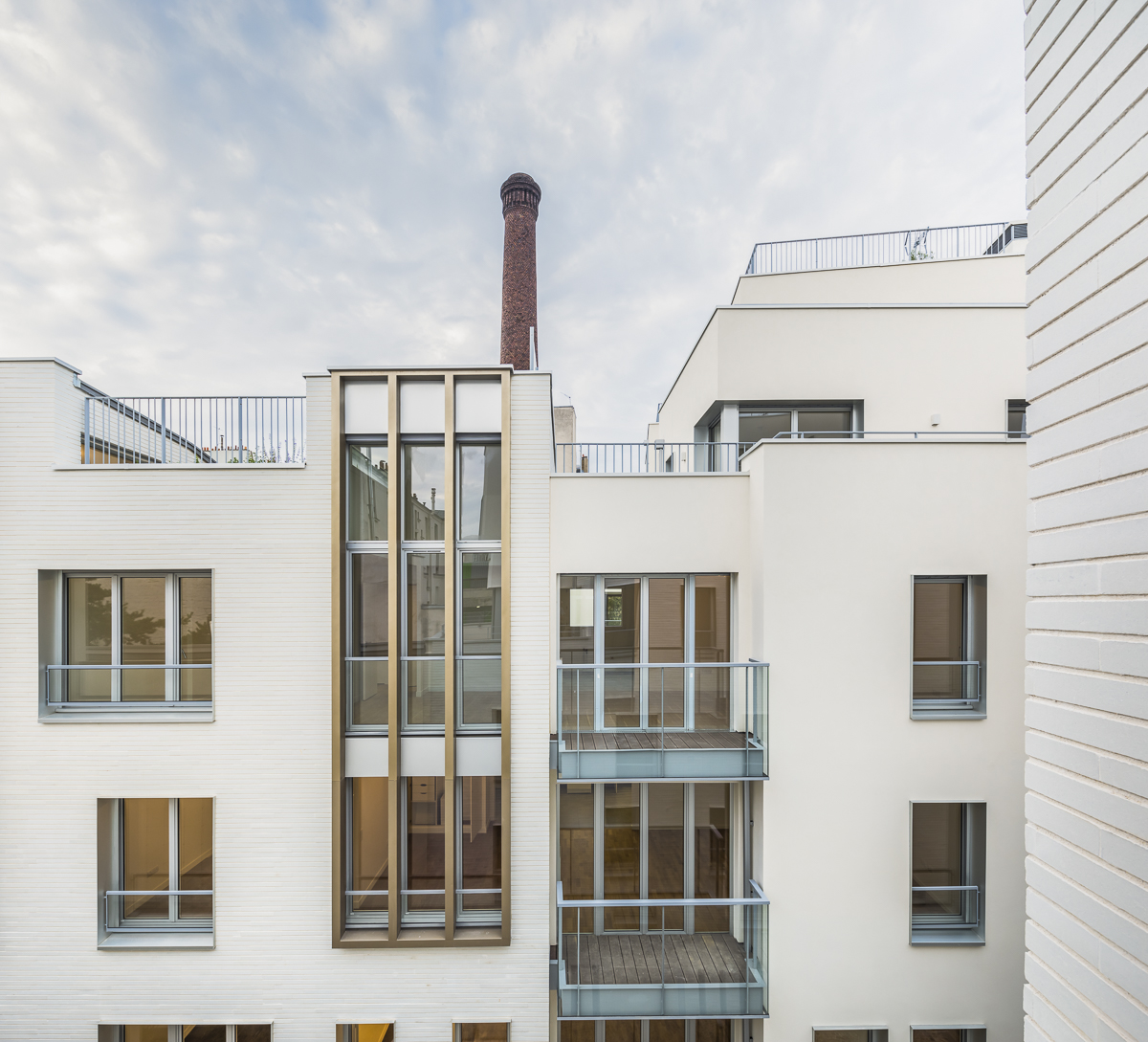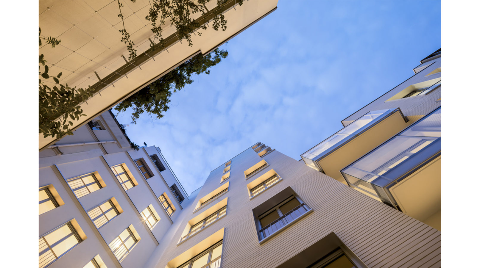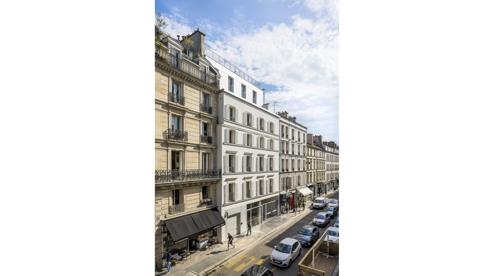 L’immeuble sur rue est conservé, réhaussé, pour maintenir intègre la séquence urbaine d’une exceptionnelle continuité.