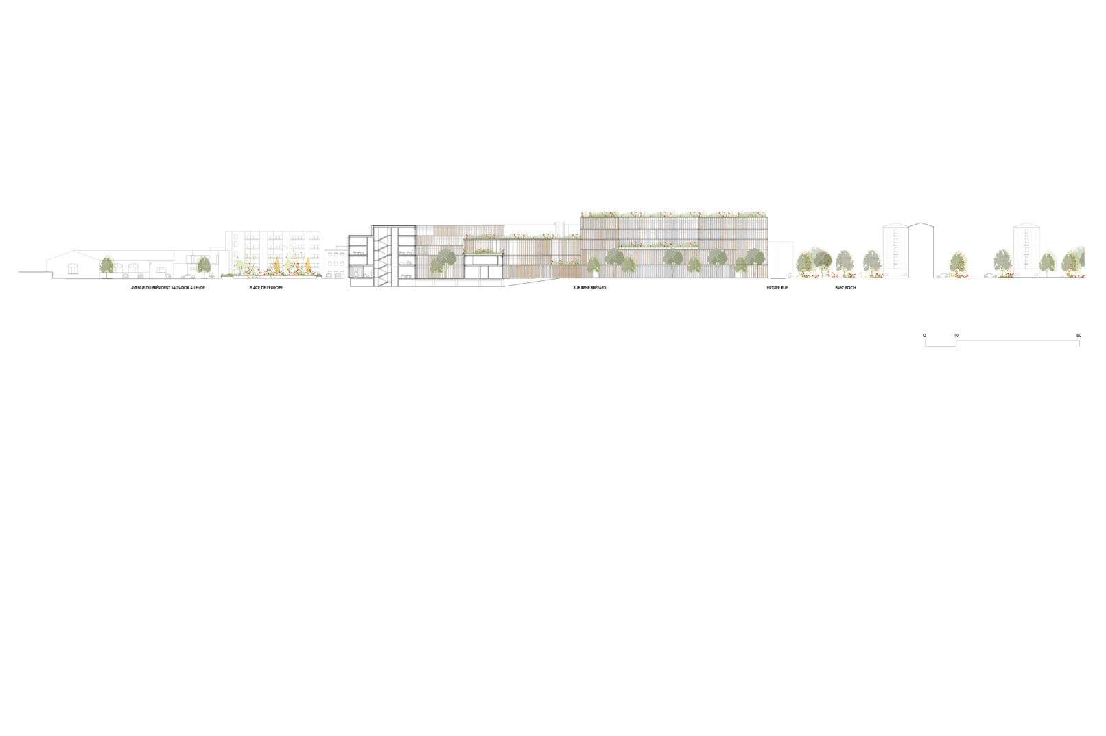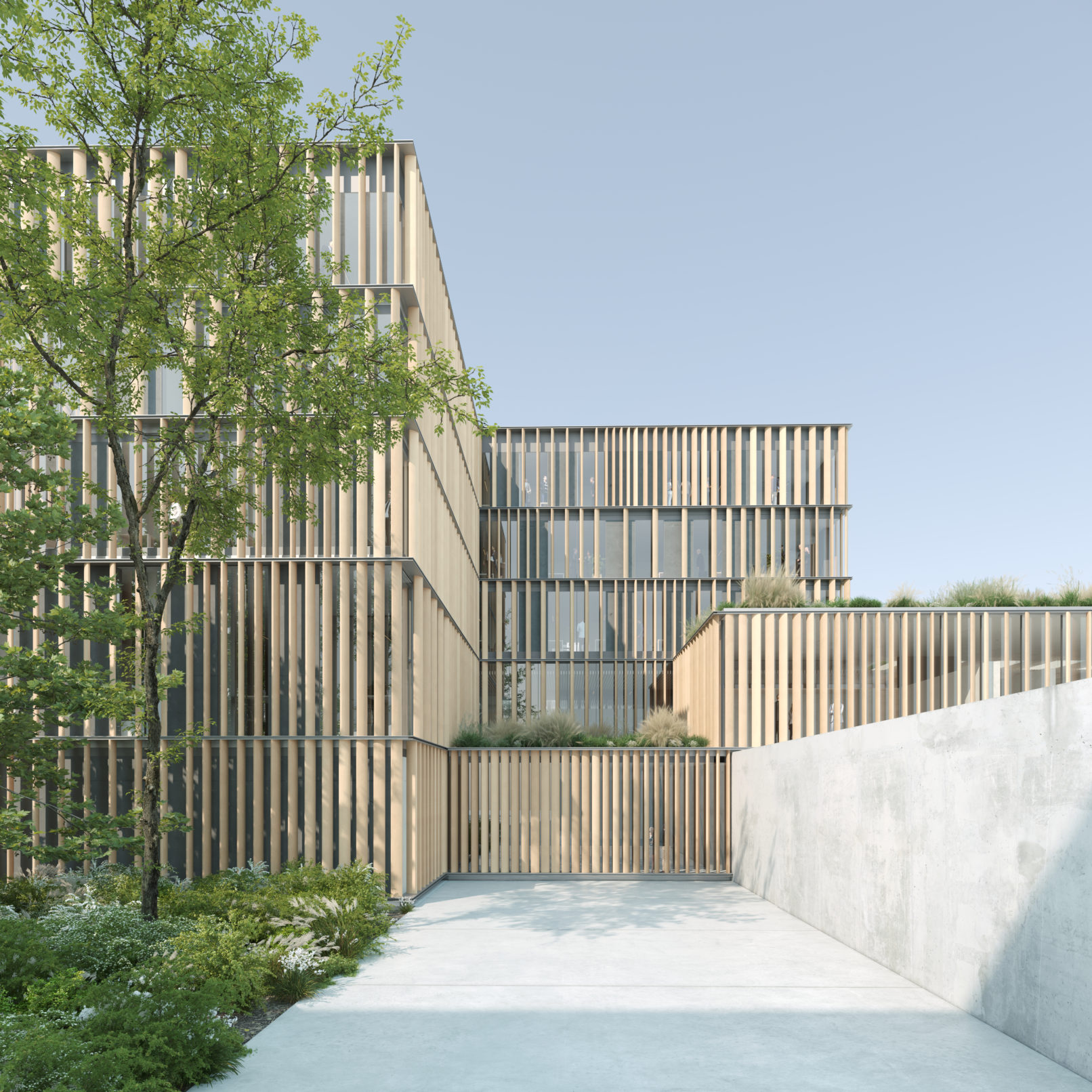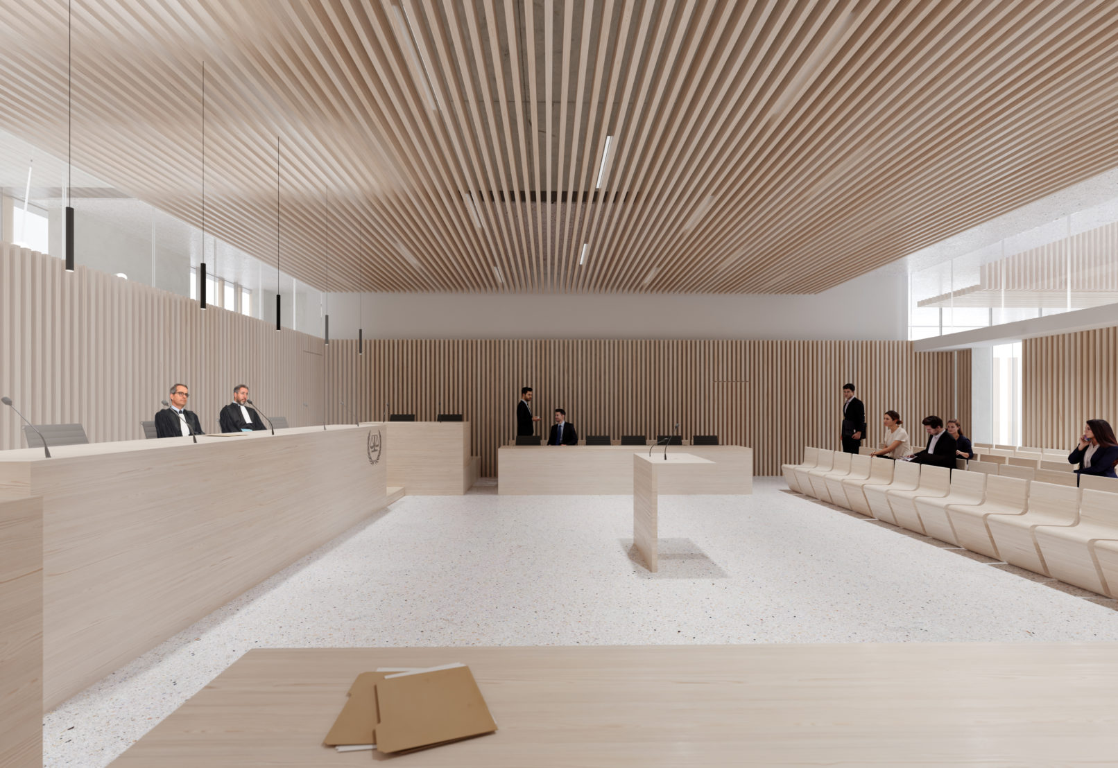 Le projet prend appui sur l’édifice existant pour proposer un nouveau front urbain, ouvert sur l’espace public recomposé. Une résille de céramique continue, posée en manteau autour de l’ensemble bâti, unifie l’ancien et le neuf dans un même geste silencieux. Inspirée des ordonnancements gothiques de la cathédrale voisine, cette peau vibrante module les percements, filtre la lumière et inscrit la justice dans une matérialité sobre, ancrée dans le paysage de la pierre meulière.