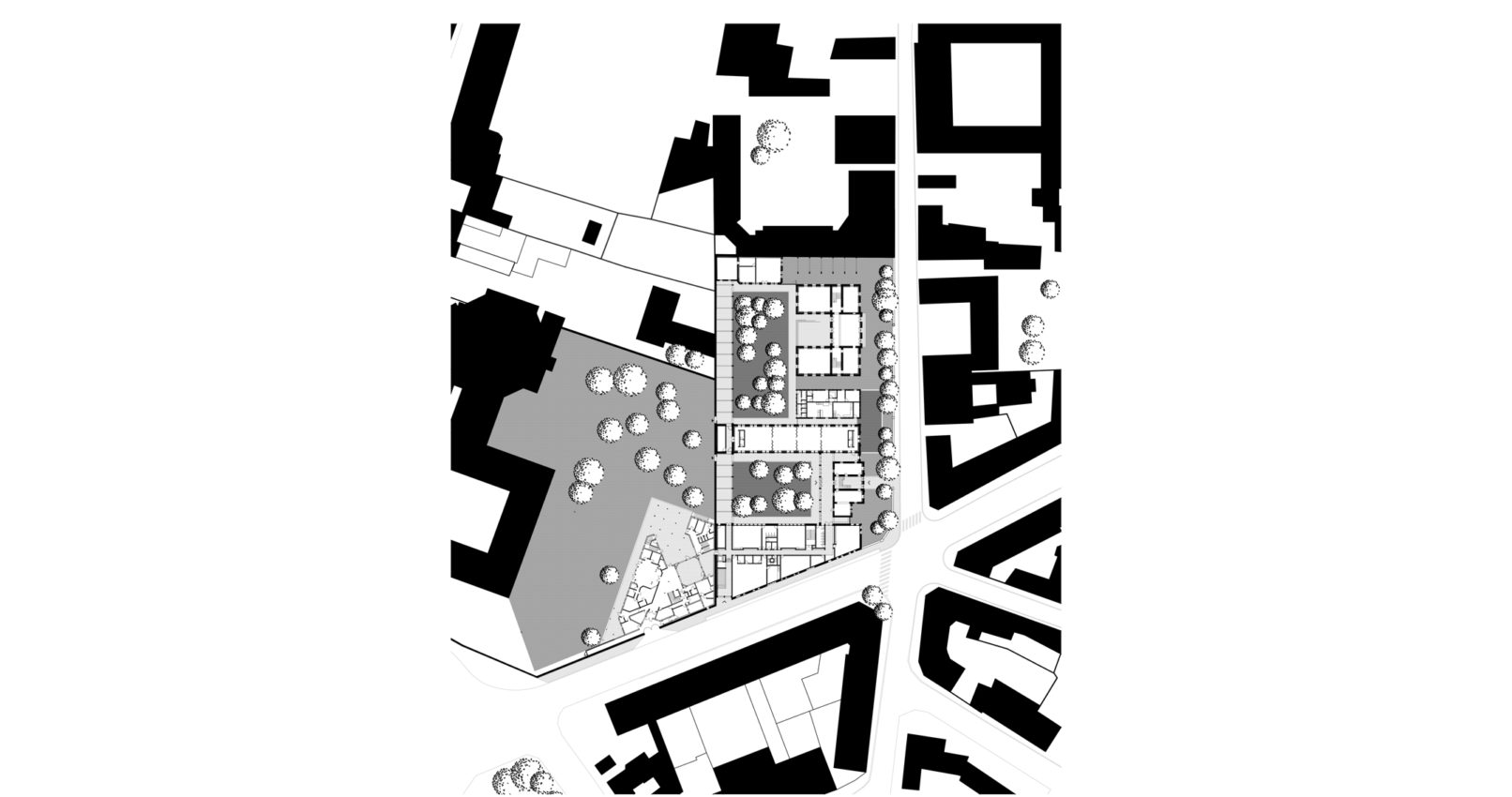 L’intervention repose sur une recomposition précise : une nouvelle entrée réoriente l’établissement vers la ville ; une extension discrète vient articuler les entités maternelle et élémentaire autour d’un préau central ; les flux sont clarifiés, les circulations reconnectées, les espaces pédagogiques ouverts sur la cour.
