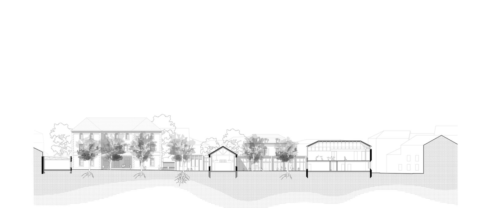L’écriture architecturale prolonge les logiques existantes sans les figer. Les volumes ajoutés, en ossature bois et vêtus de terre cuite claire, s’inscrivent avec justesse dans le site. L’ensemble revendique une sobriété constructive et un haut niveau d’exigence environnementale : matériaux biosourcés, confort d’été passif, réemploi, désimperméabilisation des sols.