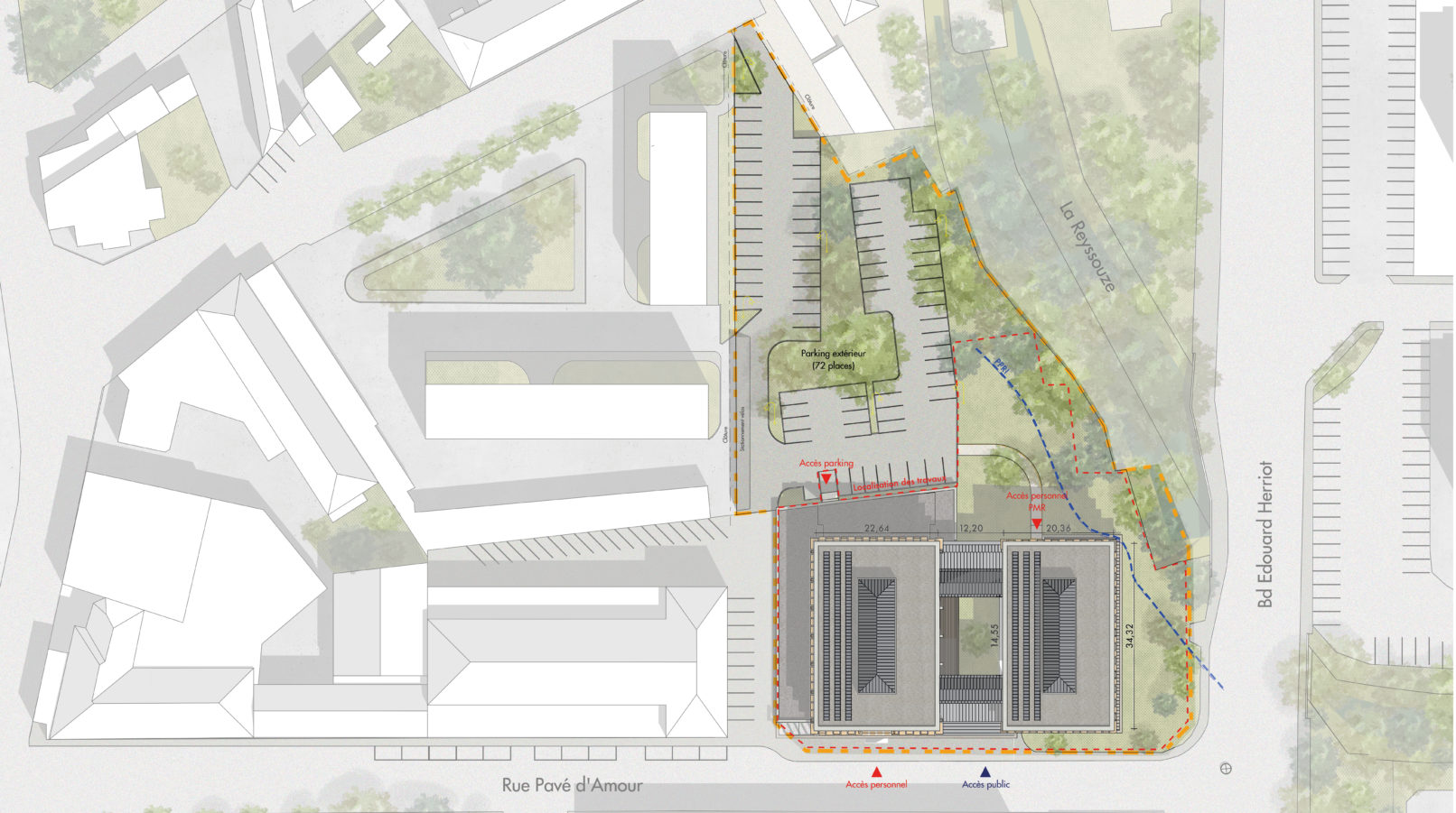 L’accueil du public a été repensé pour offrir des espaces plus conviviaux et accessibles. Le projet intègre également une forte dimension environnementale, notamment par la restitution d’importantes surfaces perméables et la création d’une connexion naturelle avec les berges de la Reyssouze.