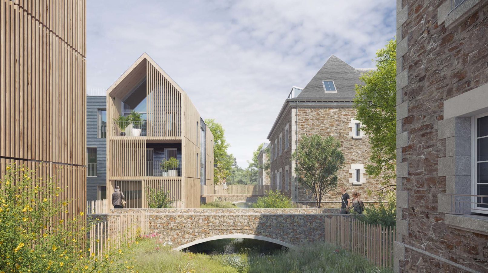 Nous reconnaissons aux trois pavillons conservés, témoins de l’ancienne destination du site, une valeur patrimoniale majeure qui impose d’installer les conditions d’un dialogue par le truchement des matériaux, de la volumétrie, de leur gabarit réduit. Nous voyons là, les signes de l’îlot ouvert, la possibilité d’une énième réinterprétation de l’habiter, dans un tissu libre mais tenu, dense mais lâche, réglé mais décalé.