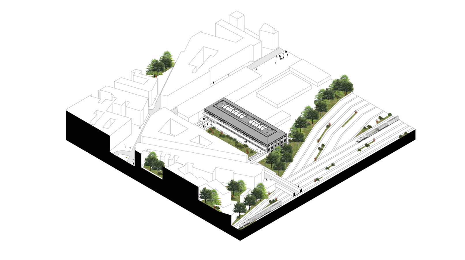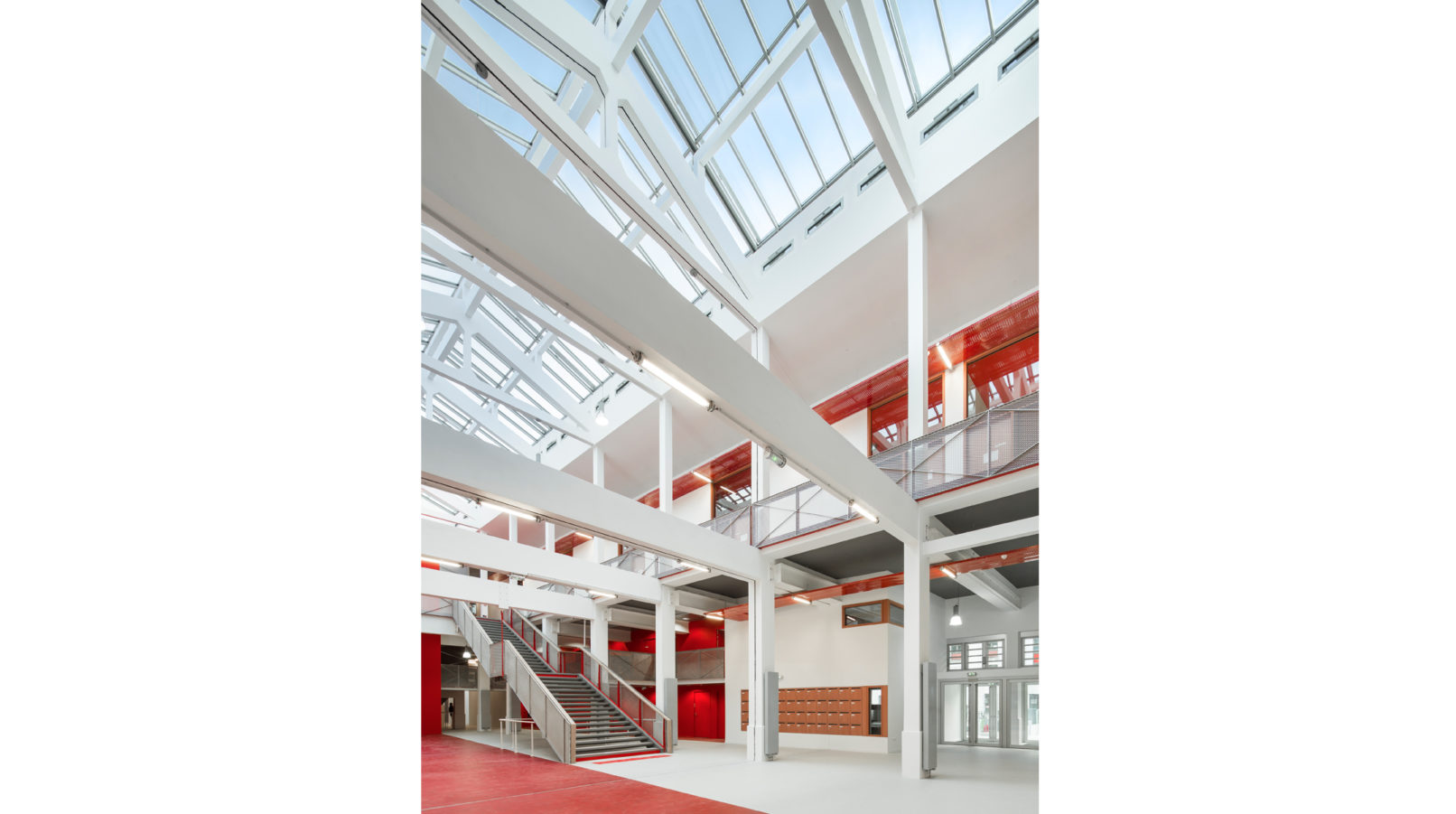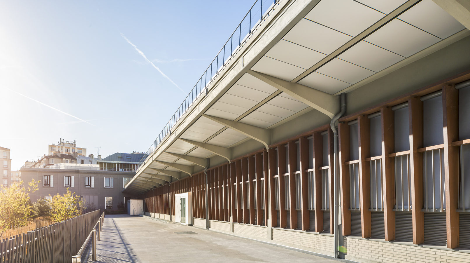 Reconversion de l’ancienne halle des NMPP, ancien dépôt de la SNCF, située dans la ZAC Pajol dans le 18° arrondissement de Paris en bordure des voies de la Gare de l’Est afin d’y accueillir un nouvel IUT pour l’Université Paris 7. Un atrium est créé dans le bâtiment en vidant la trame centrale du bâtiment, tous les locaux étant alors éclairés naturellement par les baies latérales côté façade, et côté intérieur par l’atrium créé. A l’opposé de la libération de la structure, est construit un noyau neuf qui concentre toutes les nécessités fixes (technique, sécurité, etc.) du projet.