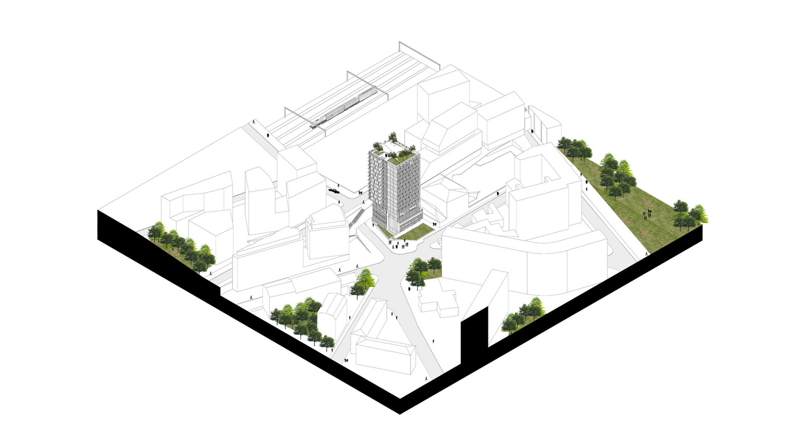 Après désamiantage complet des façades, la Tour Loiret est réorganisée en résidence pour étudiants. La tour se transforme par un accès direct depuis la dalle urbaine qui n’existait pas lors de sa construction en 1970. La typologie de plot, fermé sur les voies SNCF, est repensée par des logements très ouverts sur la ville, autour d’un noyau de circulation central repensé en éclairage naturel, aux vues lointaines.